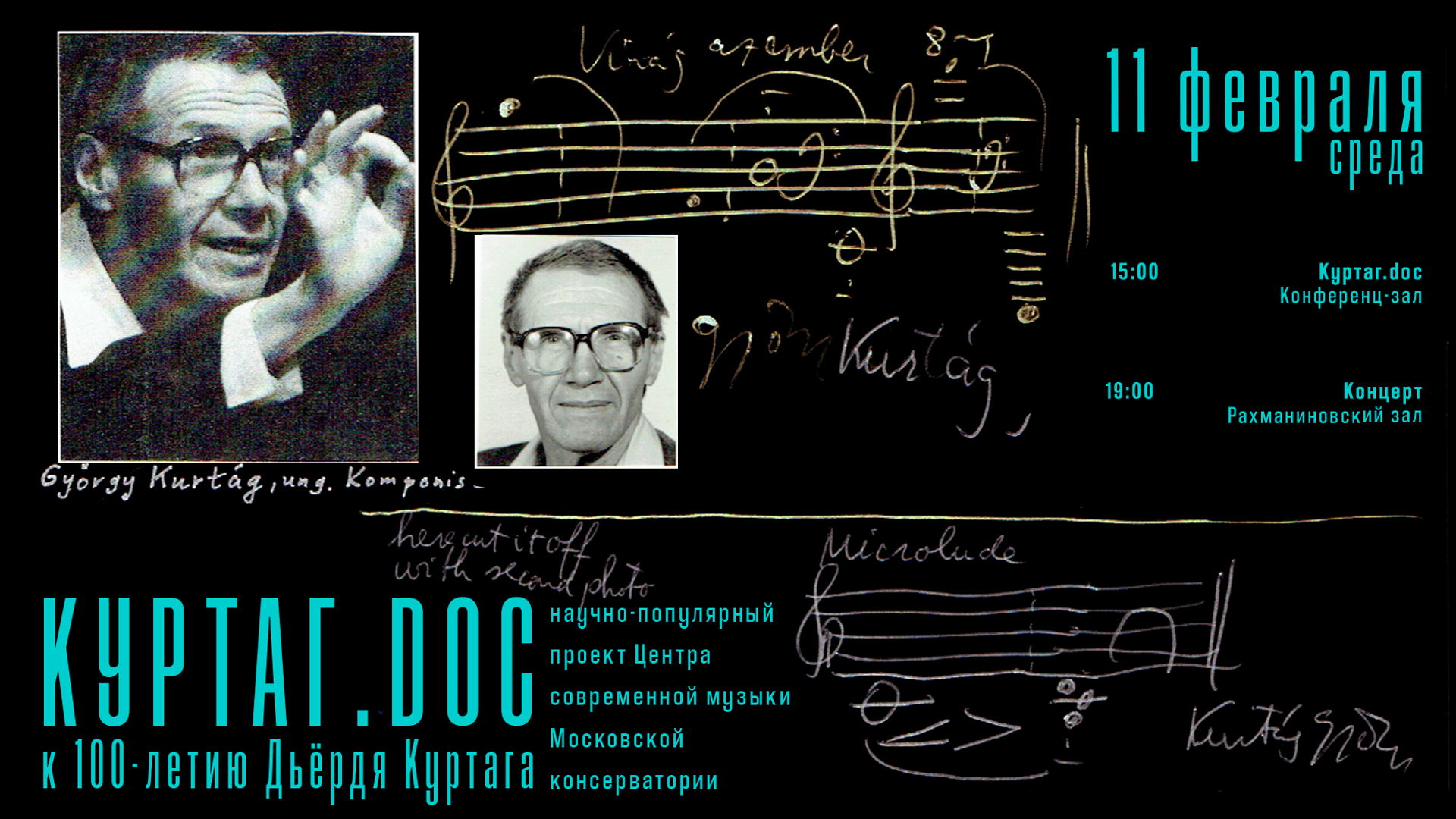 «Кураг.doc» — это научно-популярный проект Центра современной музыки Московской консерватории (куратор — музыковед Мария Невидимова). Посвященный 100-летию венгерского композитора Дьёрдя Куртага, он продолжает серию встреч, в рамках которых знакомство с наследием авангардистов происходит в формате, приближенном к практике документального театра. «Благодаря этому у слушателей и участников читок появляется возможность услышать голоса своих предшественников, по-новому прочувствовать свою причастность к миру музыки и музыковедения: осознание того, что “великие” тоже учились, искали, много трудились ради успеха и не всегда его достигали, помогает увидеть аналогии с происходящим сегодня. А разглядывание интересных фотографий и видеоматериалов, поиски на них знакомых лиц способствуют созданию уютной атмосферы» (Ангелина Самойлова в альманахе «Время слышать / Слышать время»).